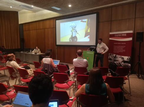 The first presentation was led by Alexandre Bernardino (ISR-Lisboa) and focused on the AHA project (Augmented Human Assistance Project). This project consists of the development and deployment of a novel Robotic Assistance Platform supported by IoT technology and designed to promote a healthy lifestyle, sustain active aging, and rehabilitate those with motor deficits. The major star of this project is called Vizzy, a robot designed to support therapists and care professionals in promoting exercise and the importance of an active lifestyle in elderly people. This project was already tested in senior houses and health centers.