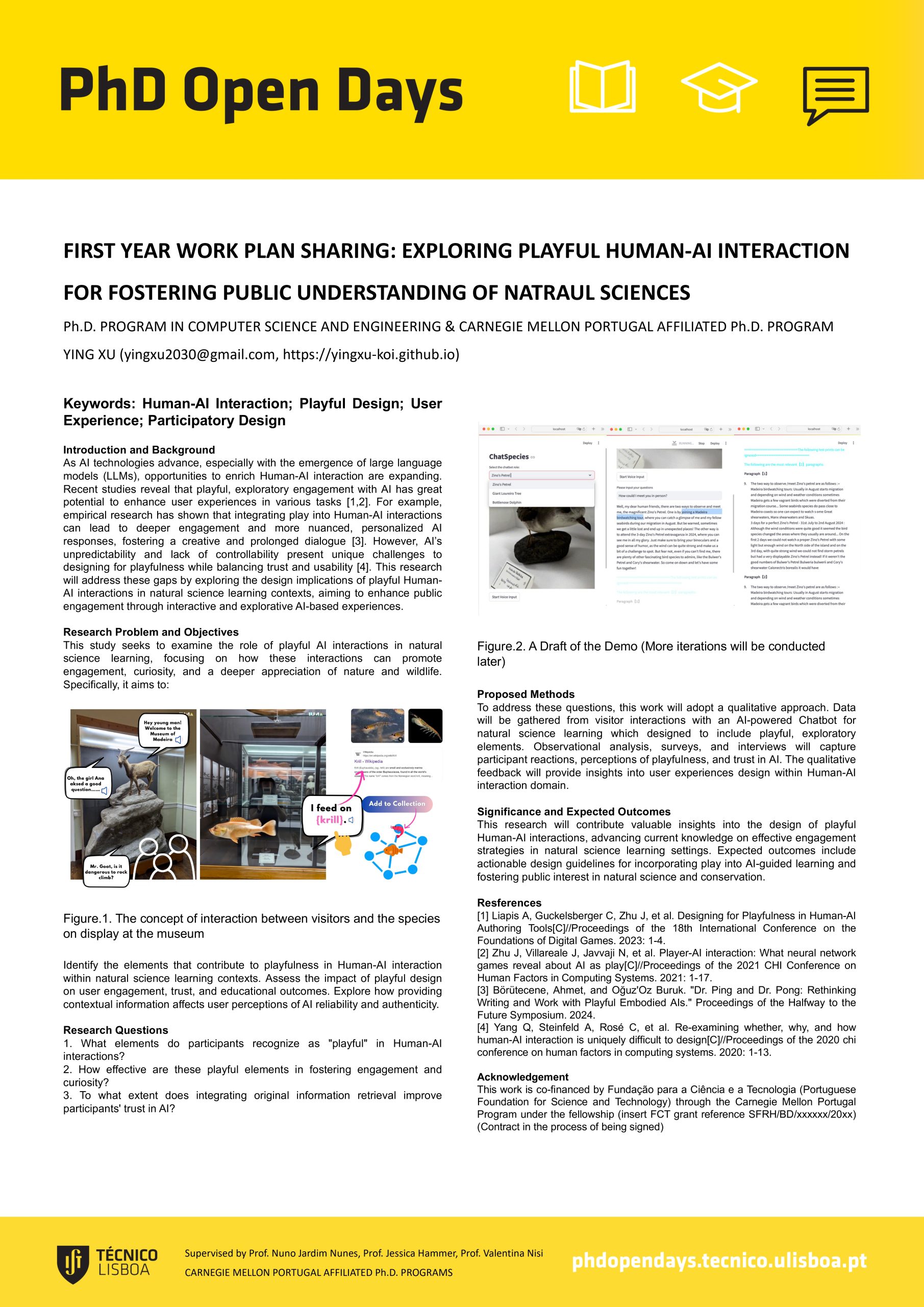 The following CMU Portugal students had their posters exhibited at the PhD Open Days: Catarina Fidalgo (Dual Ph.D. in HCI), Diana Fernandes (Dual Ph.D. EPP) and Ying Xu (Affiliated Ph.D. in HCI).