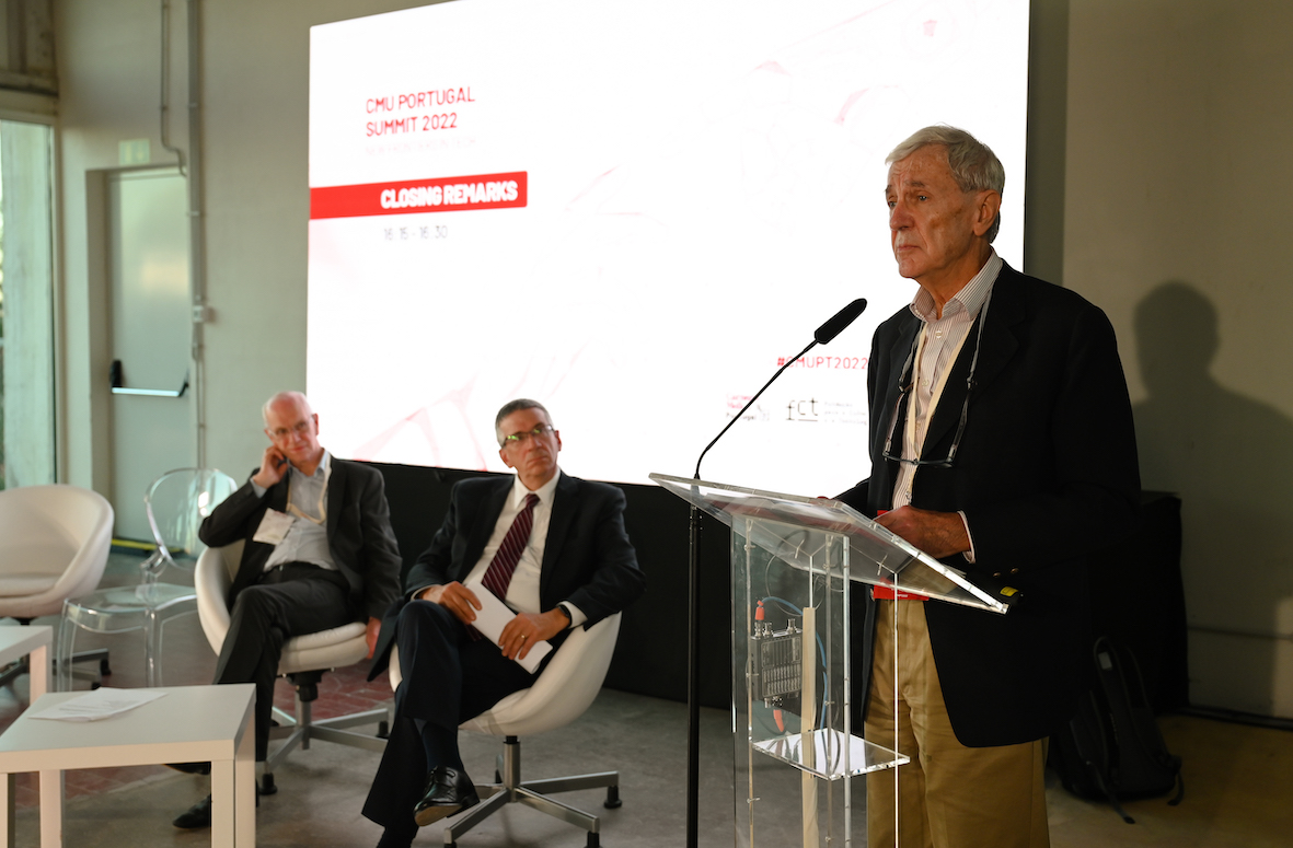 To close the “CMU Portugal Program Summit 2022 “New Frontiers in tech”, James H. Garrett Provost at Carnegie Mellon University, Sir John O’Reilly Chair of CMU Portugal ERC, and José M.F.Moura, CMU Portugal Program Director at CMU, expressed their gratitude to all the attendees coming from CMU and across Portugal, and also their satisfaction with what has been achieved under the Program to date, but above all to see the possibilities that have arisen for future collaborations which were strengthened during this two days of discussion.